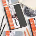 This Canson Graduate Sketch & Notes pad is an invaluable ally for all your note-taking and sketching. You can write and draw with pencil and felt-tip pen, and erase easily without damaging the paper. With a soft or hard cover made from recycled fibres, this sketchbook has rounded edges and an elastic band for easy fastening. Its ribbon bookmark helps you quickly find your place in your notes and sketches, while the gusseted pocket keeps your important documents neatly in place!