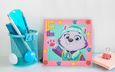 - Finished size 13x13cm with printed border and built-in-fold out stand