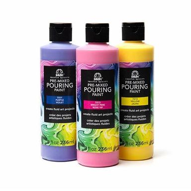 The FolkArt Pouring Paint requires no mixing of paints and mediums to get great marbling results. Simply pour on the specially-formulated, pre-mixed acrylic paint to your surface to create a beautiful marbled effect! The water-based and non-toxic formula is ready to use and requires no additional mixing. Use this basic white as a staple in all of your pouring projects. This high-quality acrylic paint eliminates over-mixing and color muddying for a simple painting experience.